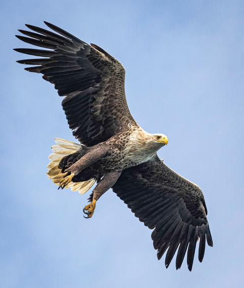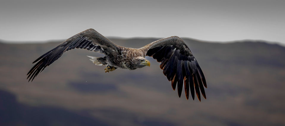 With an impressive 8-foot wingspan, white-tailed eagles are often called 'flying barn doors,' and when you see them soaring or powering across a loch, it’s easy to see why. Their Gaelic name, iolaire sùil na grèine—the bird with the sunlit eye—perfectly captures their majesty. I love that description, as it truly sums up the essence of the white-tailed eagle